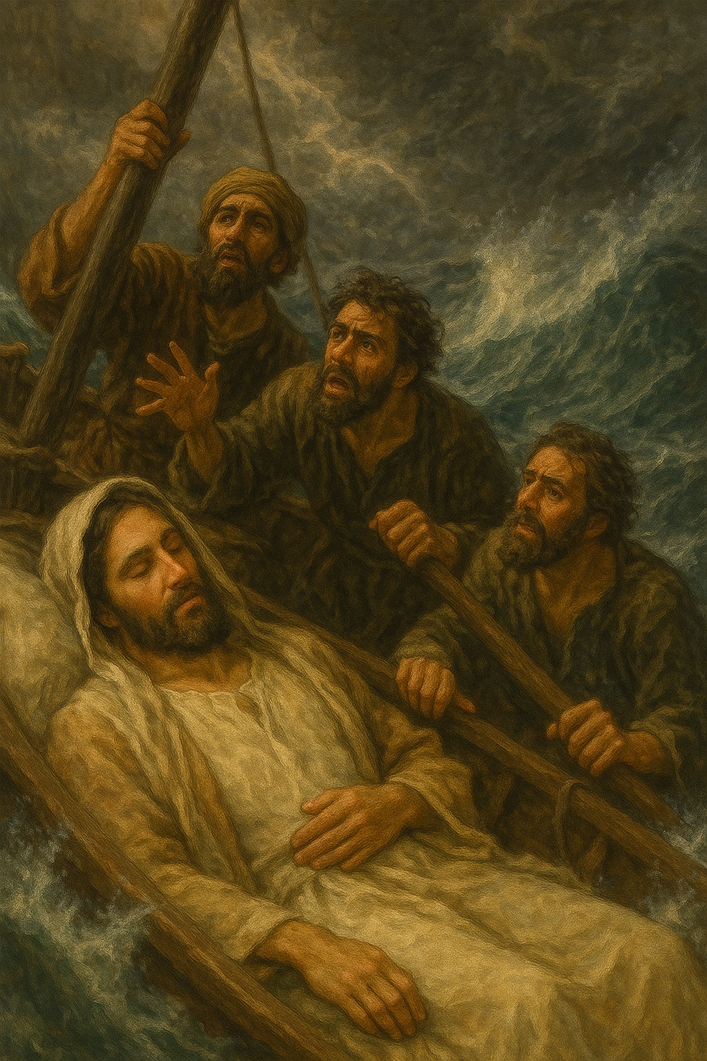 예수님은 배 안에서 주무십니다.