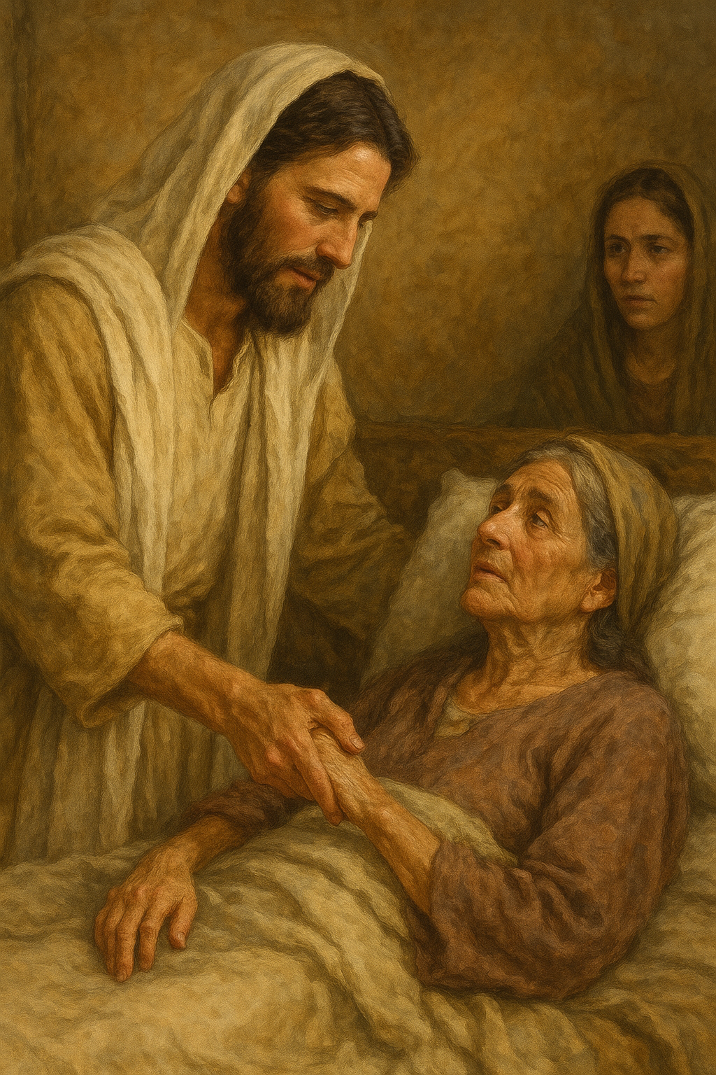 베드로의 집에서 장모가 열병으로 누워 있는 모습을 보신 예수님은