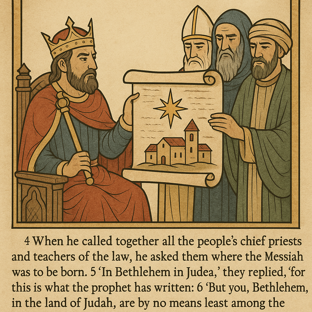 4 왕이 모든 대제사장과 백성의 서기관들을 모아 그리스도가 어디서 나겠느냐 물으니