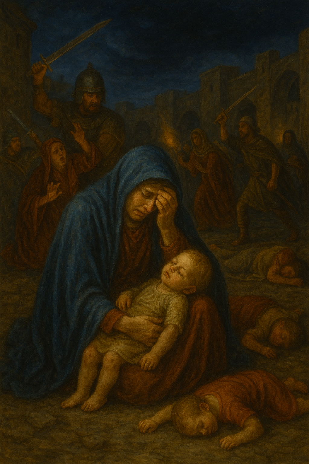 18 라마에서 슬퍼하며 크게 통곡하는 소리가 들리니 라헬이 그 자식을 위하여 애곡하는 것이라 그가 자식이 없으므로 위로 받기를 거절하였도다 함이 이루어졌느니라